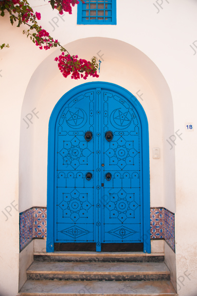 Another example of the Rodolph d'rlanger inspired doorways at Sidi Bou Said overlooking the Mediterranean and the Gulf of Tunis. (7Mb file).