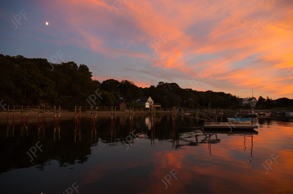 A sunset moon over Hospital Cove, Cape Cod. (3Mb file).