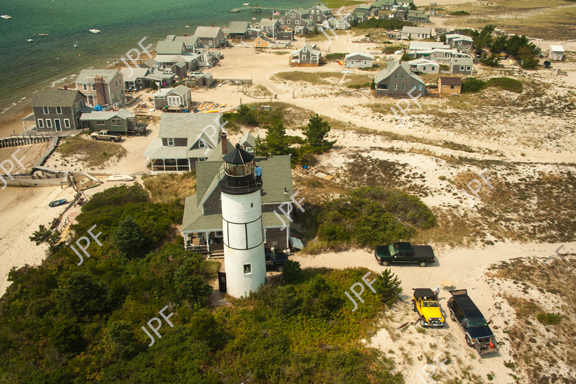 Barnstable's Sandy Neck barrier beach supports a summer colony of cottages surrounding the lighthouse. (7Mb file).