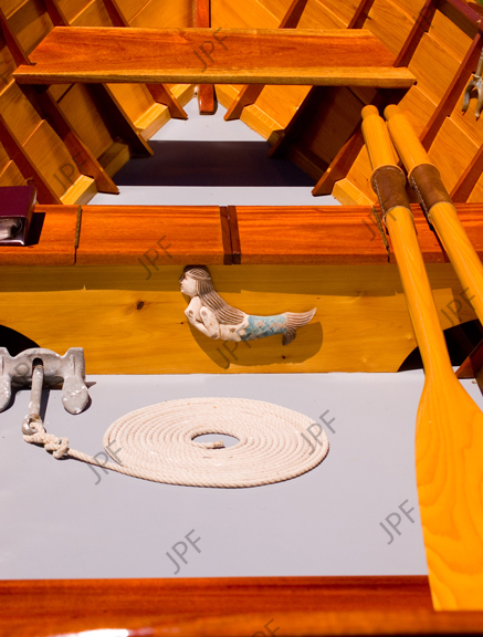 A mermaid adorns a well built wooden skiff. (1Mb file size)
