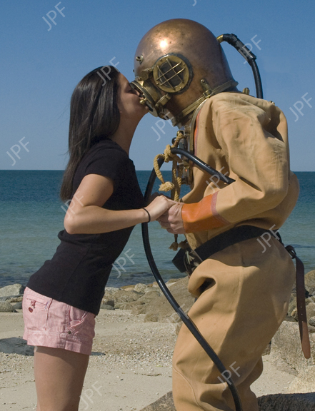 A deep sea diver gets good luck wishes. (1Mb file size)