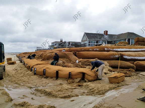 Biodegradable sand tubes made from burlap and coconut fiber can delay the effects of coastal erosion by creating a barrier between the force of ocean waves and erosion sensitive land. (6Mb file size)