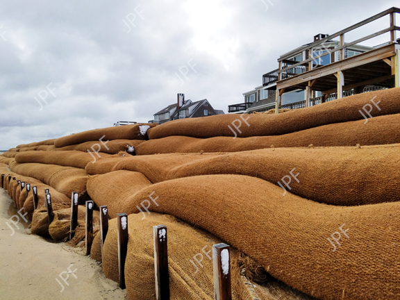 Biodegradable sand tubes made from burlap and coconut fiber can delay the effects of coastal erosion by creating a barrier between the force of ocean waves and erosion sensitive land. (8Mb file size)