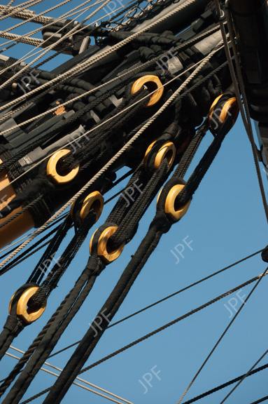 Bulls eyes and rigging on the bow of Nelson's 104-gun, ship of the line Victory. (4Mb file).