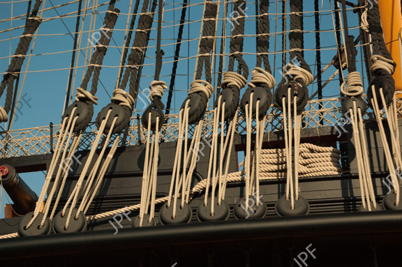 Deadeyes and rigging on Nelson's 104-gun, ship of the line Victory. (4Mb file).