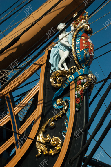 figurehead, nelson, anchor, sailing, portsmouth, naval, maritime, ship’s rigging, 104 gun, 1st rate, ship of the line, victory, stock photography