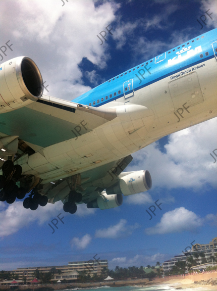 Jets landing at St Martin come very close to the bystanders on Maho Beach at the end of the runway. (2Mb file).