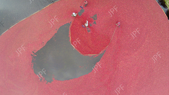 Booms are required for the cranberry harvest to bring them together for extraction. (4Mb file).