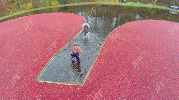 The cranberry harvest on Cape Cod in October is labor intensive. (6Mb file).